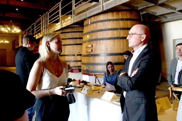 高柏丽酒庄Haut Bailly的新酒庄像是个罗马式露天剧场。54个水泥发酵罐里外三层,以同心圆阵列分布在中层。下层是陈酿空间,静置着正在橡木桶中升华的2021年份酒。这些酒将在接下来的一年中充分吸收氧气和木香,进化成能承载岁月重量的佳作。