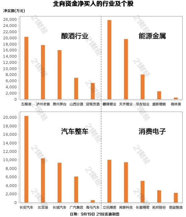 个股方面,北向资金净买入赣锋锂业(002460.SZ)、五粮液(000858.SZ)、长安汽车(000625.SZ)、天齐锂业(002466.SZ)、中兵红箭(000519.SZ)居前,其中,赣锋锂业被净买入2.58亿元,五粮液被净买入2.03亿元,长安汽车被净买入2.03亿元,天齐锂业被净买入1.96亿元,中兵红箭被净买入1.87亿元。